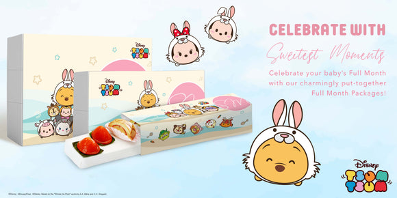 When it's time to announce your baby's arrival, discover our limited edition Tsum Tsum Snake halal-certified Full Month boxes - a delightful keepsake for family and friends.