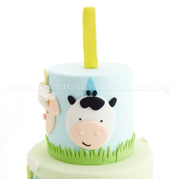 Delight your little one with this adorable Farm Animals Crossing Cake. Featuring a horse, cow and pig, this cheerful fondant cake will bring a smile to any farm-lover's face. The numerical fondant in the middle and the fondant name will make the occasion even more special. Perfect for celebrating outdoors, it is sure to leave a lasting impression.