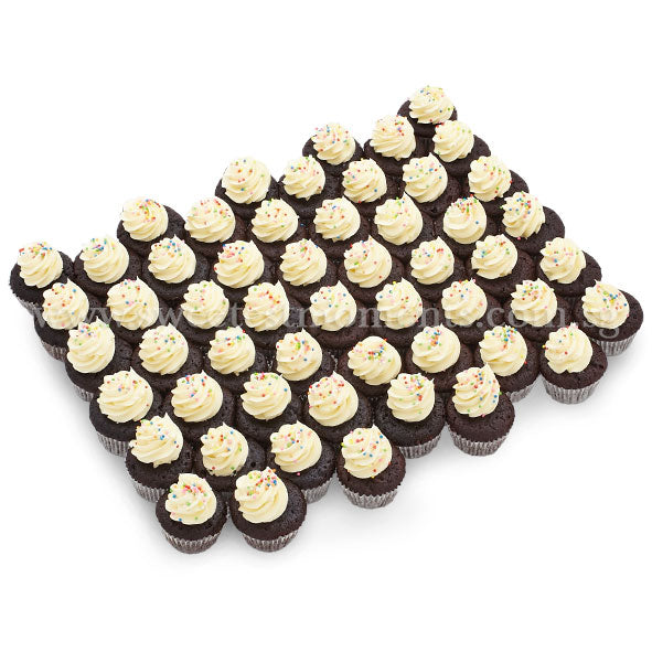 • 54 mini cupcakes are packed in a covered box measuring  34cm (L) x 27.5cm (W) x 10cm (H)