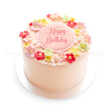 Indulge in a delicious tropical treat with our beautiful Tropical Blooms Cake. This pastel buttercream cake is adorned with vibrant fondant flowers for a stunning finish. The personalised printed message on an edible icing sheet is the perfect addition for any celebration or occasion. Enjoy an elegant addition to your special day.