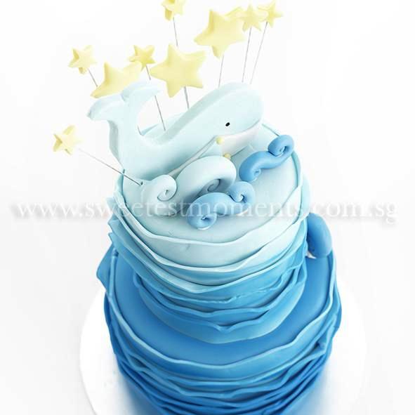 Layers of blue ombre buttercream make this cake the perfect treat for whale and ocean lovers. Topped with a fondant whale and yellow stars, this cake is the perfect treat to make kids' birthdays, full month celebrations, and special occasions even more spectacular! Unleash the underwater adventure in your next celebration!