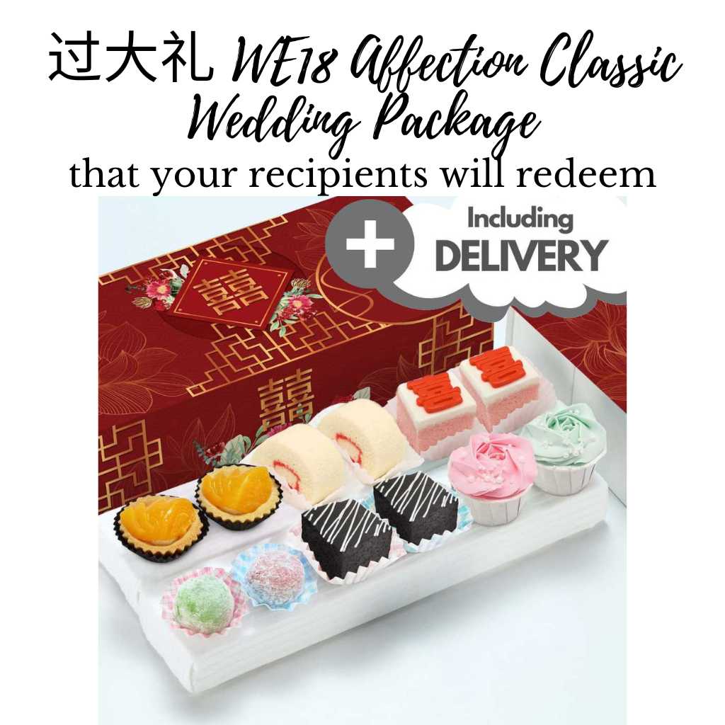You can choose between the WE18 Affection Classic Wedding Package or the Guo Da Li Marble Cake for your recipient to redeem.
