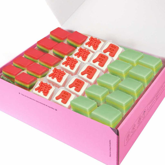 - 10 Pastel Cubes with 满月 (Full Month) in Red Fondant