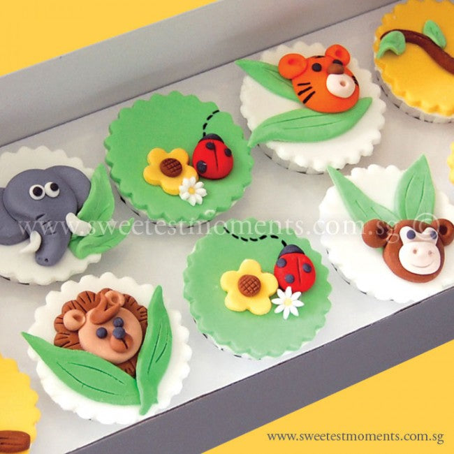 Celebrate a wild birthday with our Jungle Buddies cupcakes! These standard sized treats feature fondant monkey, tiger, elephant, and lion toppers, perfect for jungle lovers. Get ready for a roaring good time!