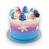Add a sprinkle of magic to your party with our Frozen Fairyland Cake! This delightful treat dazzles with blue, purple, and off-white ombre buttercream, topped with charming fondant snowflakes and shiny white pearls. Plus, your celebrant’s name shines in white fondant right in the center. It’s the ultimate showstopper for any Frozen-themed celebration!
