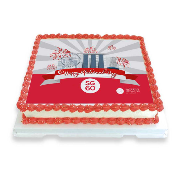Commemorate Singapore’s 60th National Day with our expertly crafted Happy National Day Singapore Rectangular Cake. Featuring smooth buttercream in the nation’s signature red and white, this cake enhances any celebration with its elegant design. Offered in a substantial 3kg size and presented in a sleek transparent cake box, it combines style and convenience. Ideal for sharing, this cake promises to be a memorable highlight of your festivities.