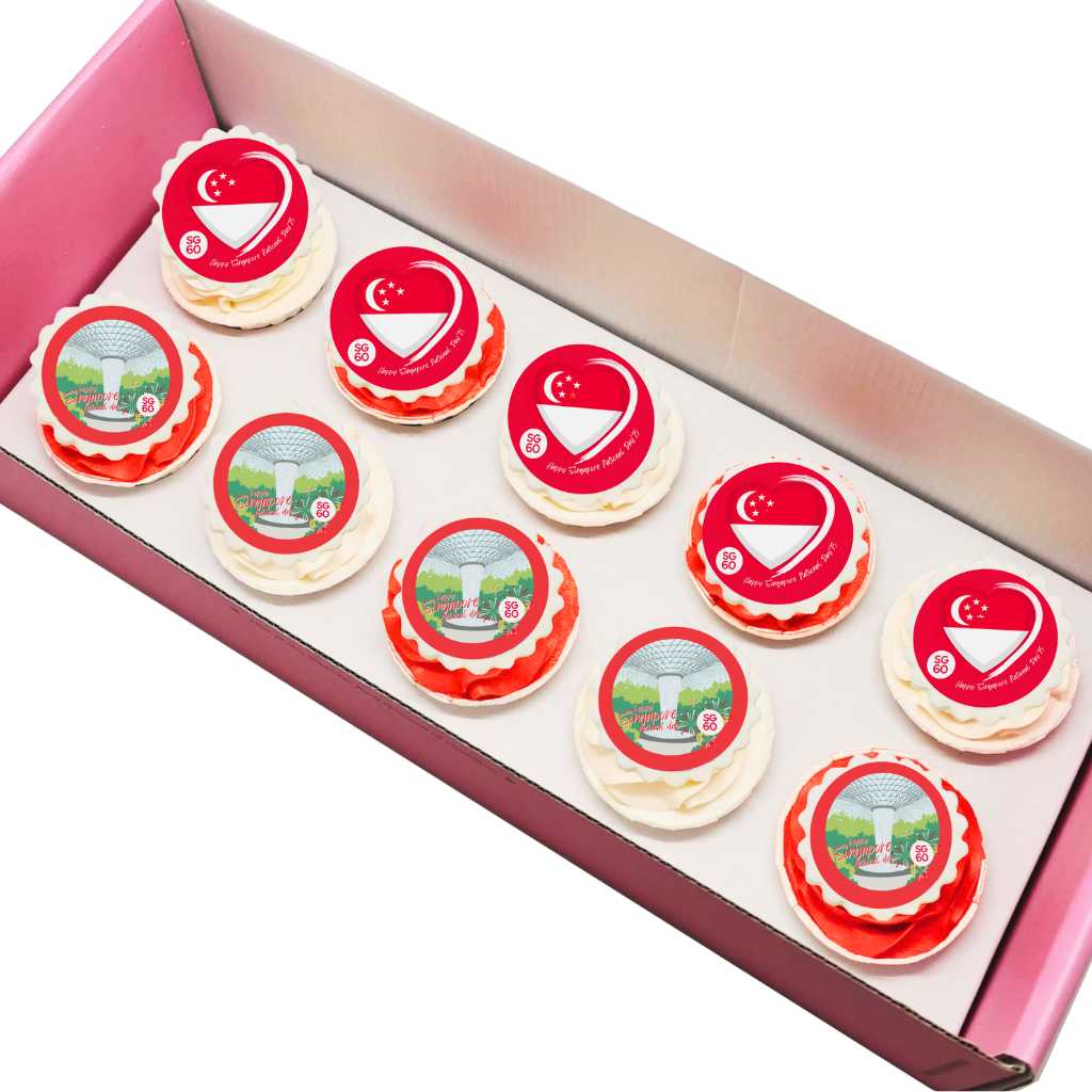 Celebrate Singapore’s incredible journey of resilience, success, and togetherness with our Together for Singapore cupcakes. Each standard-sized cupcake (5.5cm diameter) is beautifully frosted in patriotic red and white buttercream and topped with vibrant edible prints of the iconic Jewel Rain Vortex, Singapore Flag, and SG60 logo. Ideal for National Day parties, corporate events, and community celebrations — share the sweetness of 60 years of unity with every bite!
